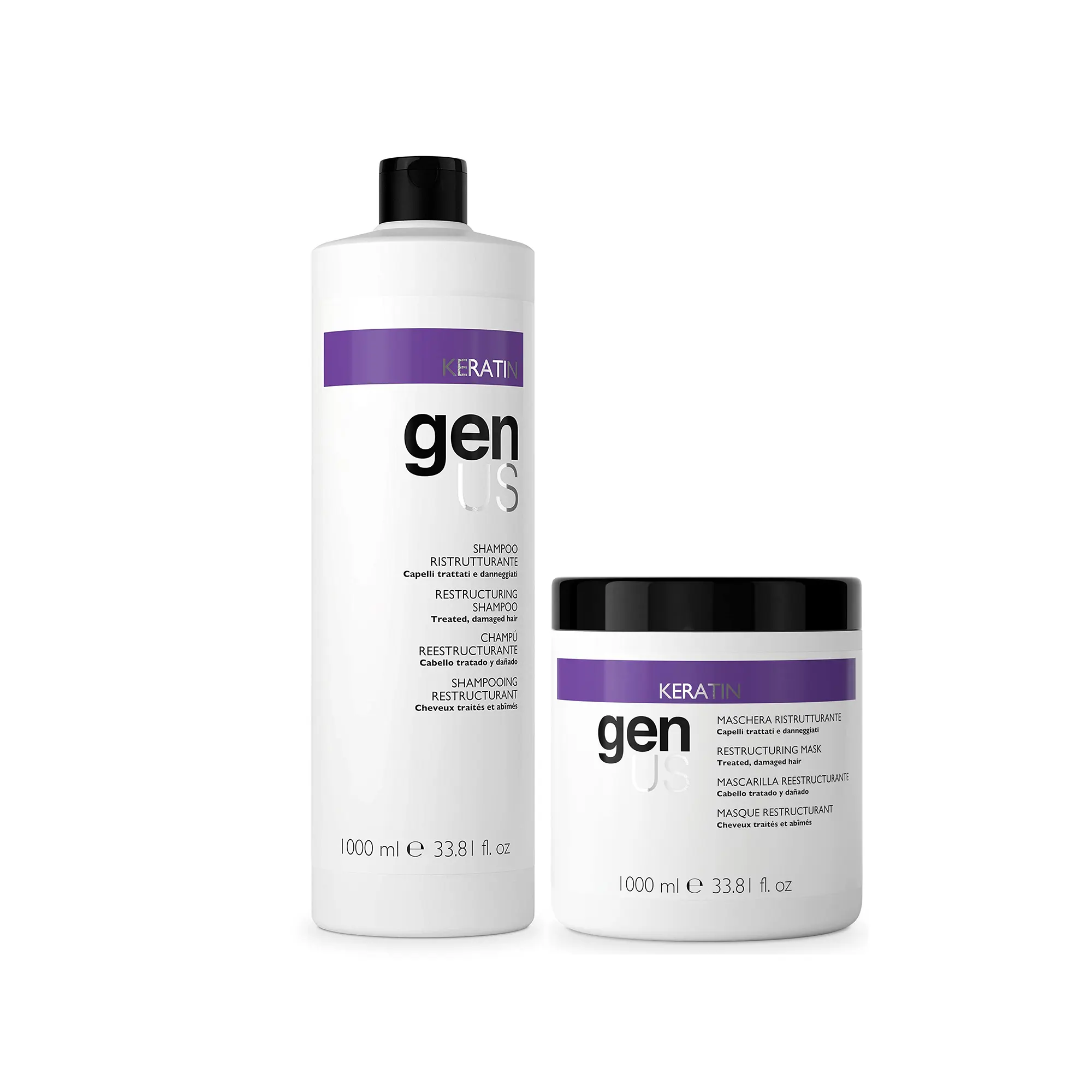 gen Us Shampooing restructurant Keratin, Enrichi en kératine et en protéines de soie, il nettoie en douceur en respectant les structures les plus abîmées et combat l’effet frisottis, pour cheveux traités et abîmés (1000ml)…