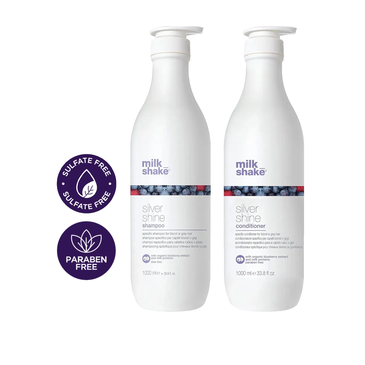 Pour des résultats intenses et froids, combinez le ‘milk_shake Silver Shine Shampoo’ avec le ‘milk_shake Silver Shine Conditioner’ et la ‘milk_shake Silver Shine Whipped Cream’. Pour des résultats blonds froids, combinez le shampooing avec le ‘milk_shake Silver Shine Conditioner’.