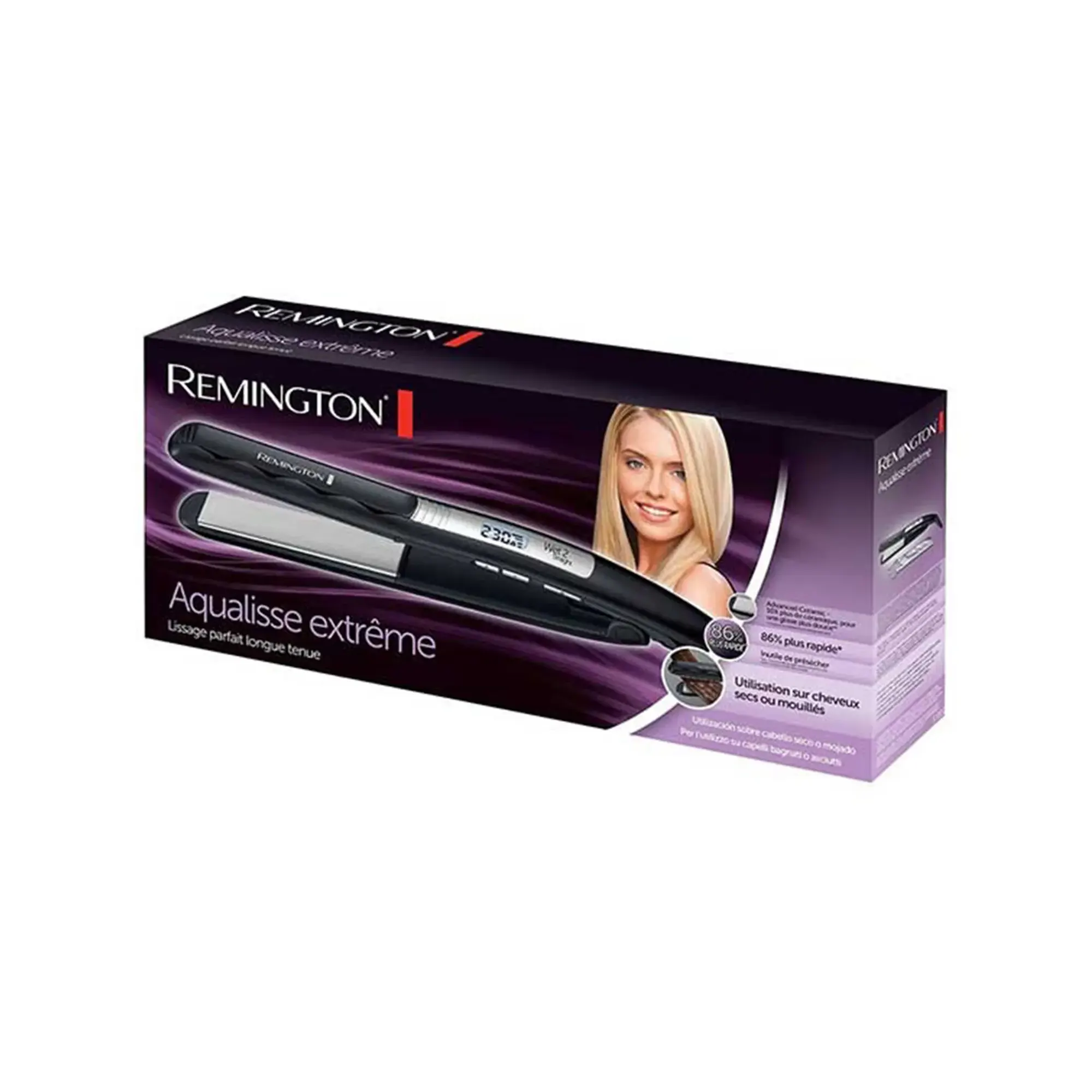 Remington Lisseur Aqualisse Extrême (Ref:7202) Système de chauffe en 15 secondes, plaques extra-longues, mode turbo, température variable, Blocage des plaques, Fonction de verrouilllage de la température, Revêtement en céramique avancée, plaques flottantes.